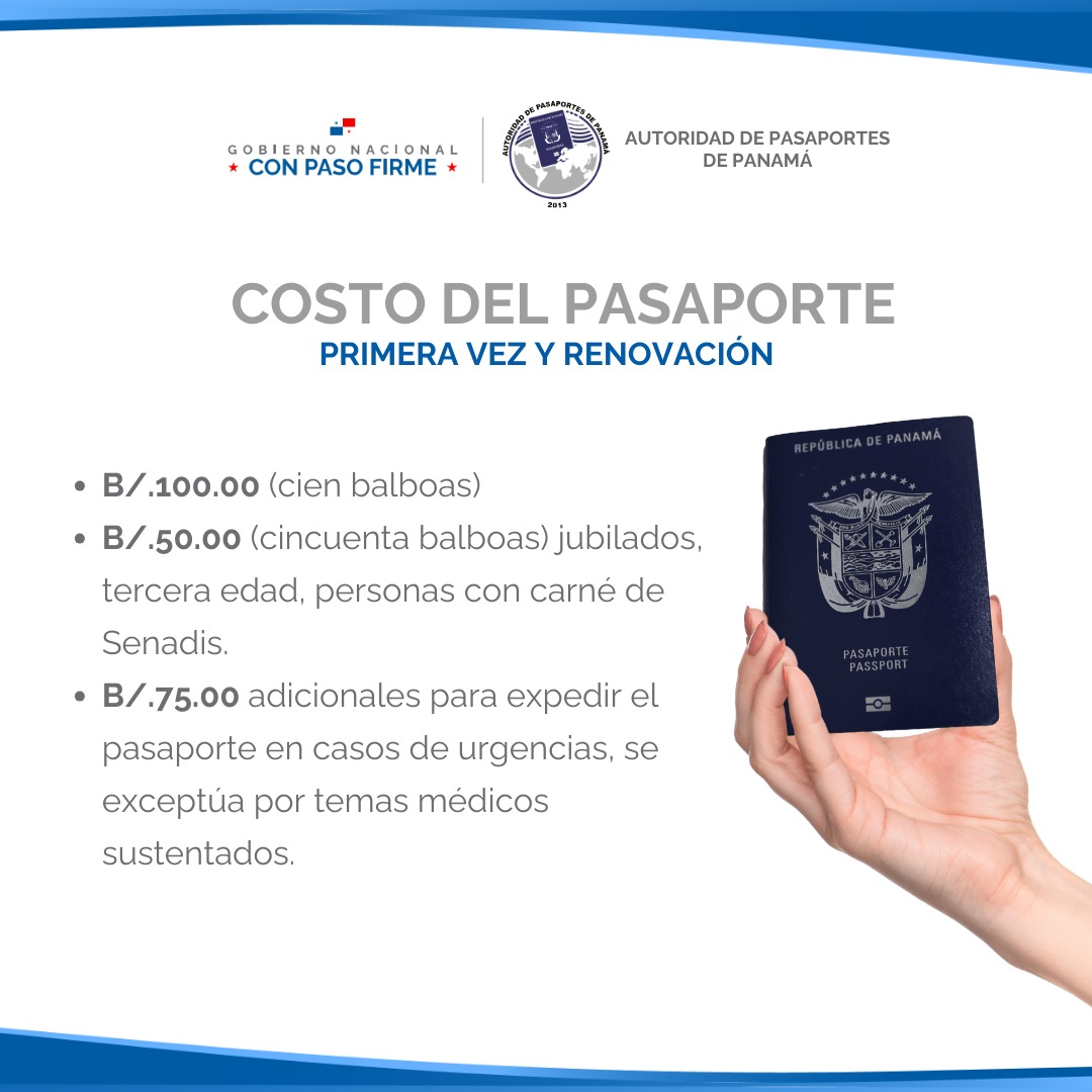 - B/.75.00 adicionales para expedir el pasaporte en casos de urgencias, se exceptúa por temas médicos sustentados.